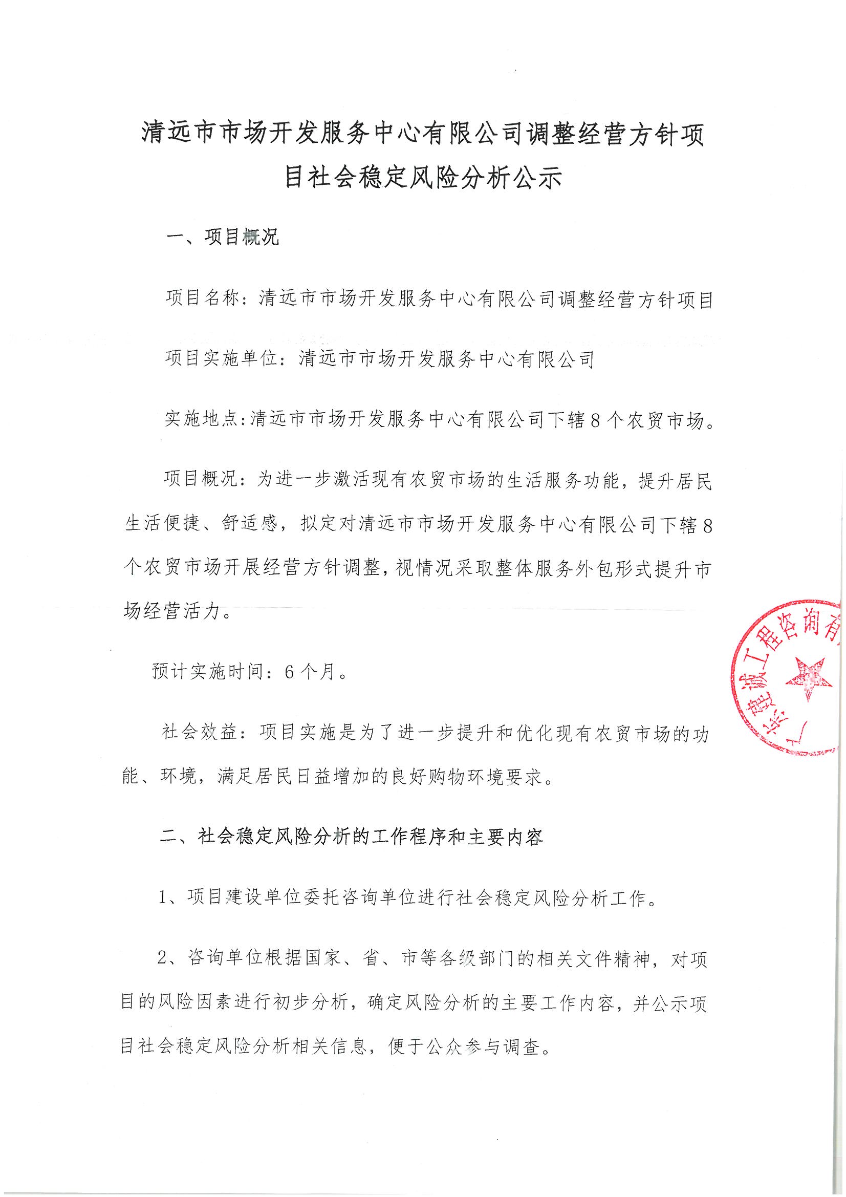 清遠市市場開發(fā)服務中心有限公司調整經營方針項目社會穩(wěn)定風險分析公示