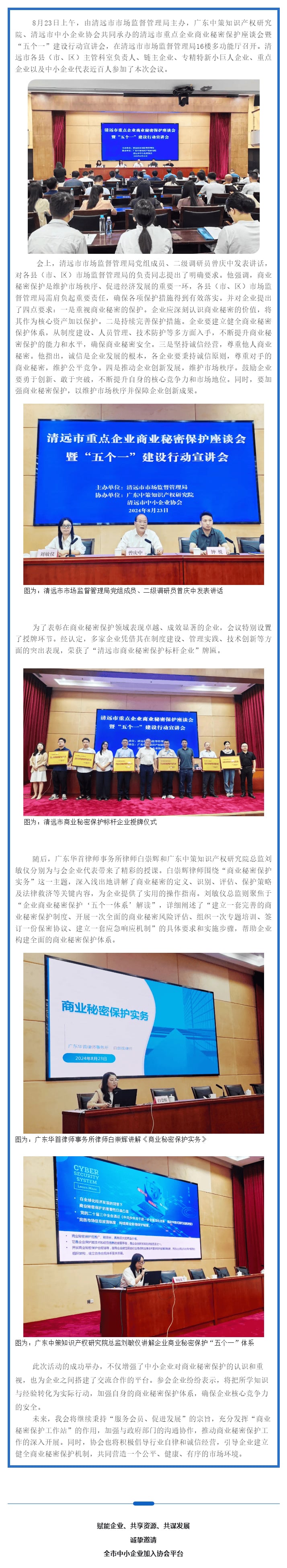 我會組織企業(yè)參加清遠市重點企業(yè)商業(yè)秘密保護座談會暨“五個一”建設行動宣講會