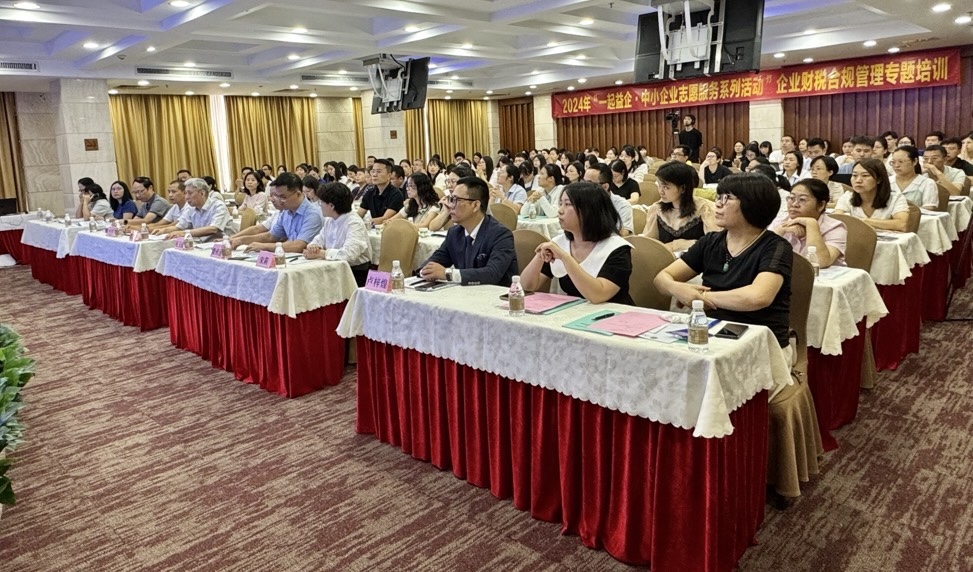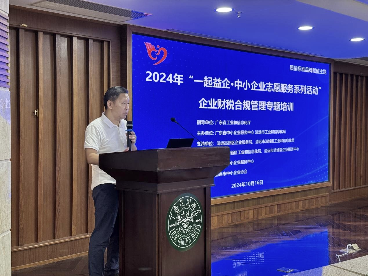 10月16日上午,“2024年‘一起益企·中小企業(yè)志愿服務(wù)系列活動(dòng)’——企業(yè)財(cái)稅合規(guī)管理專題培訓(xùn)”在清遠(yuǎn)順利舉辦。本活動(dòng)由廣東省工業(yè)和信息化廳指導(dǎo),廣東省中小企業(yè)服務(wù)中心、清遠(yuǎn)市工業(yè)和信息化局主辦,清遠(yuǎn)高新區(qū)企業(yè)服務(wù)局、清遠(yuǎn)市清城區(qū)工業(yè)和信息化局、 清遠(yuǎn)市清新區(qū)工業(yè)和信息化局、清遠(yuǎn)市清城區(qū)企業(yè)服務(wù)中心共同支持,清遠(yuǎn)市中小企業(yè)服務(wù)中心承辦,清遠(yuǎn)市中小企業(yè)協(xié)會(huì)協(xié)辦。廣東省中小企業(yè)服務(wù)中心副主任曹海濱、清遠(yuǎn)市工業(yè)和信息化局四級(jí)調(diào)研員趙玉成出席活動(dòng)并致辭,清遠(yuǎn)中小企業(yè)代表、財(cái)務(wù)相關(guān)人員等130余人參加了本次培訓(xùn)?;顒?dòng)通過(guò)“廣東省中小企業(yè)”官方視頻號(hào)、騰訊新聞APP同步直播,累計(jì)超26.4萬(wàn)人次觀看了本次直播。