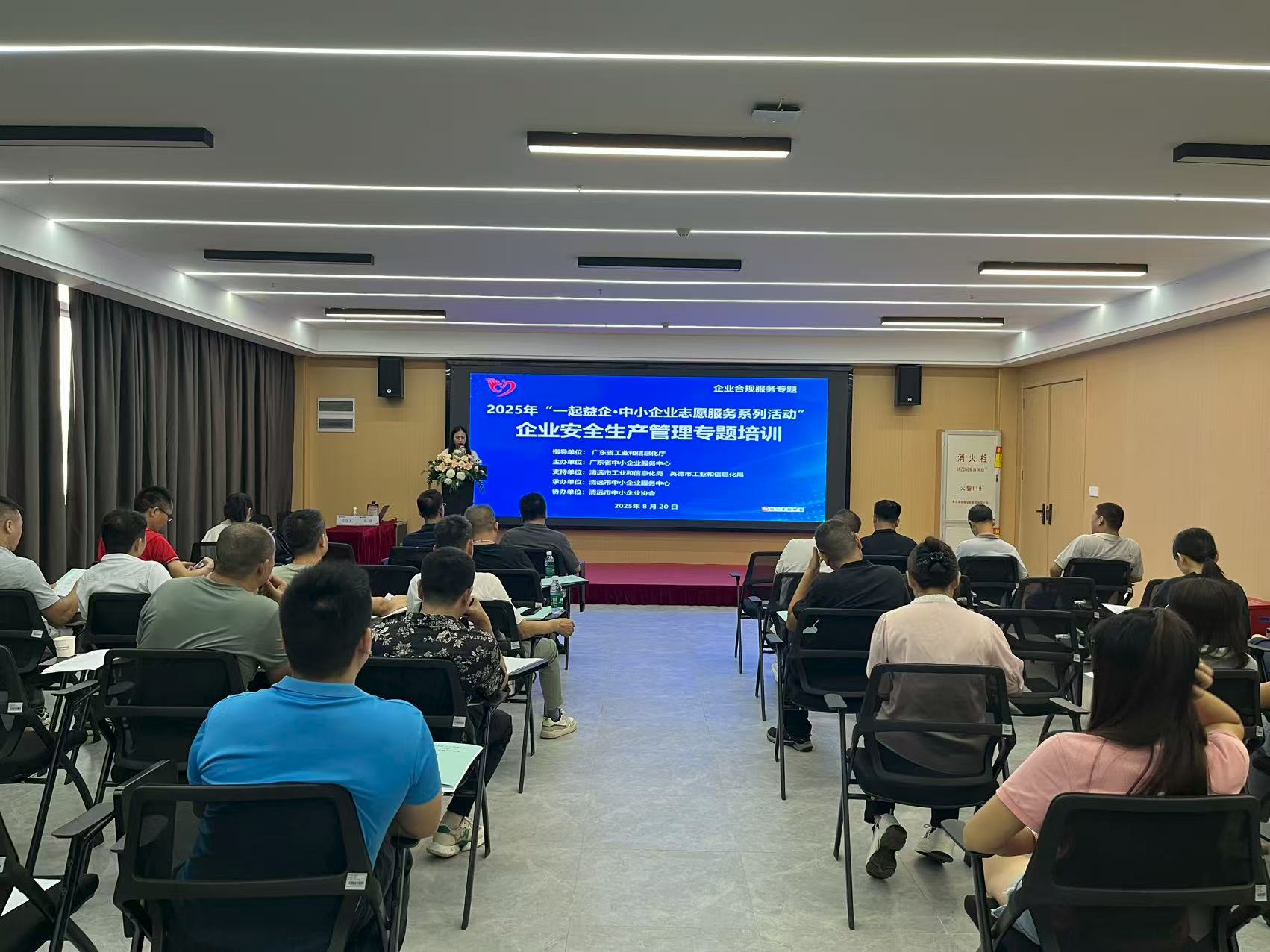 8月20日,2025年“一起益企·中小企業(yè)志愿服務(wù)系列活動”——企業(yè)安全生產(chǎn)管理專題培訓(xùn)在英德萬洋運營服務(wù)中心孵化器二樓會議室順利舉辦。本次活動由廣東省工業(yè)和信息化廳指導(dǎo),廣東省中小企業(yè)服務(wù)中心主辦,清遠市工業(yè)和信息化局、 英德市工業(yè)和信息化局共同支持,清遠市中小企業(yè)服務(wù)中心承辦,清遠市中小企業(yè)協(xié)會協(xié)辦。來自英德市50余名中小企業(yè)代表參加了本次培訓(xùn)。